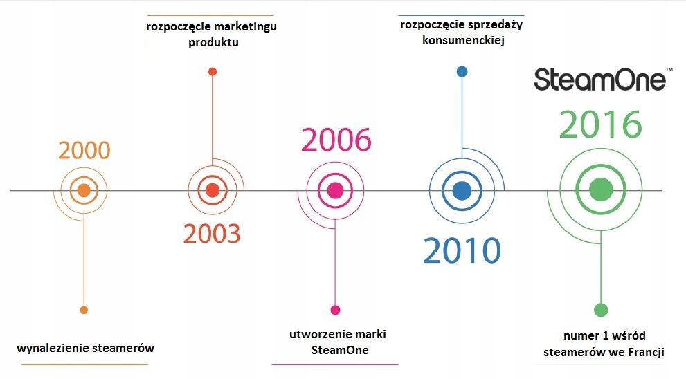 Отпариватели для одежды начали свою историю примерно в 1950 году, когда их использовали, в том числе, для придания формы головным уборам. Вся история бренда STEAMONE началась с братьев Оливье и Дэвида Габисонов, которые изначально были производителями одежды. Братья регулярно использовали устройства такого типа для устранения складок на одежде во время своих модных показов. Наступил 2003 год, и братья Габисон вернулись в Париж, чтобы разработать бренд паровых гладильных устройств. В то время рынка для этих устройств в Европе не было, но интуиция не подвела и не позволила отказаться от новаторской идеи. Они сложили все на одну карту, разработав концепцию паровых устройств, при этом отказавшись от своего нынешнего занятия, то есть моды. И так, в 2006 году был создан бренд STEAMONE – первый европейский бренд паровых аппаратов (пароварки) для профессионалов.