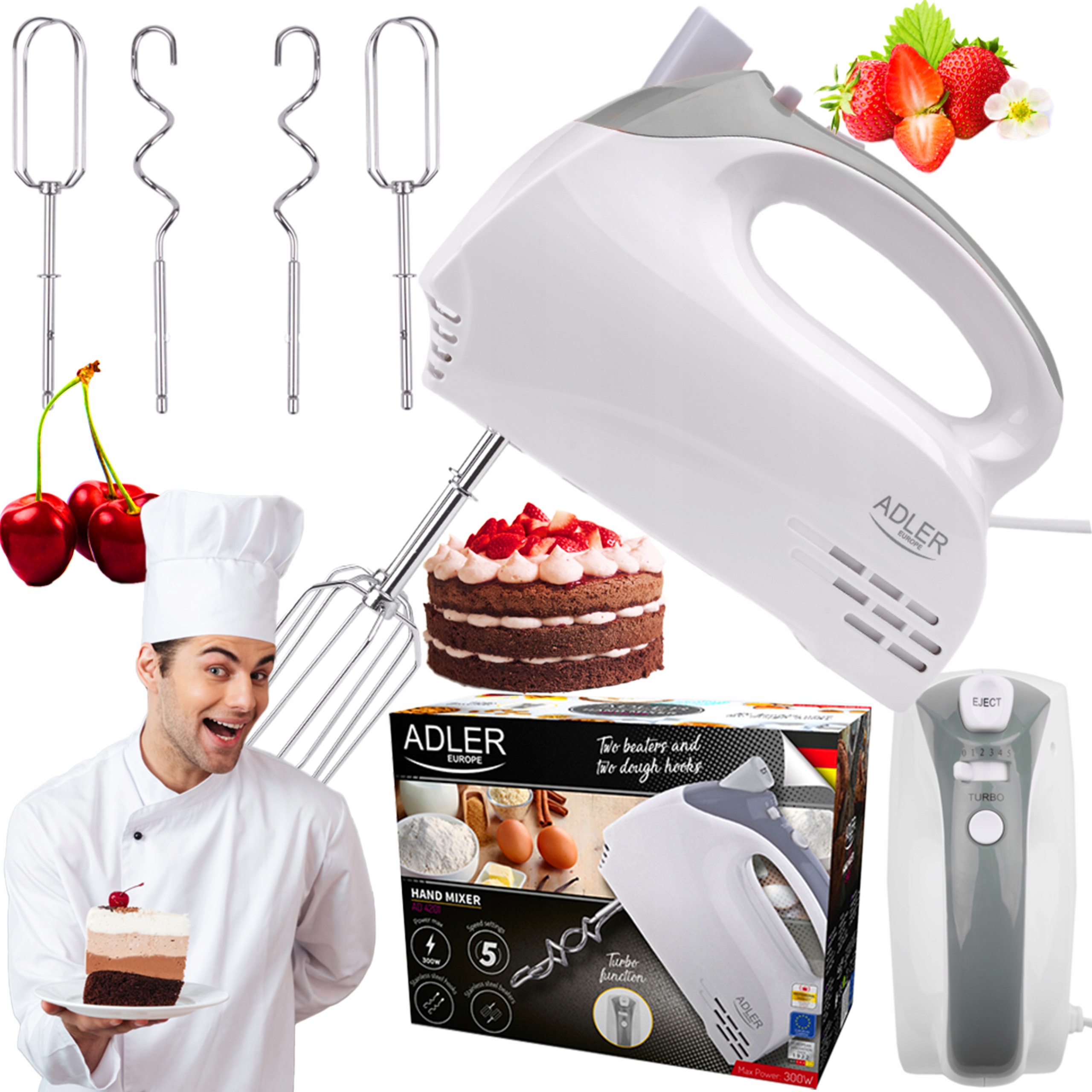 ✳ ✳ ✳lings для использования 5 различных скоростей , в зависимости от типа приготовленного блюда. Благодаря этому он подходит для смешивания муки с другими ингредиентами и для взбивания белков.