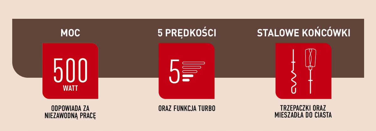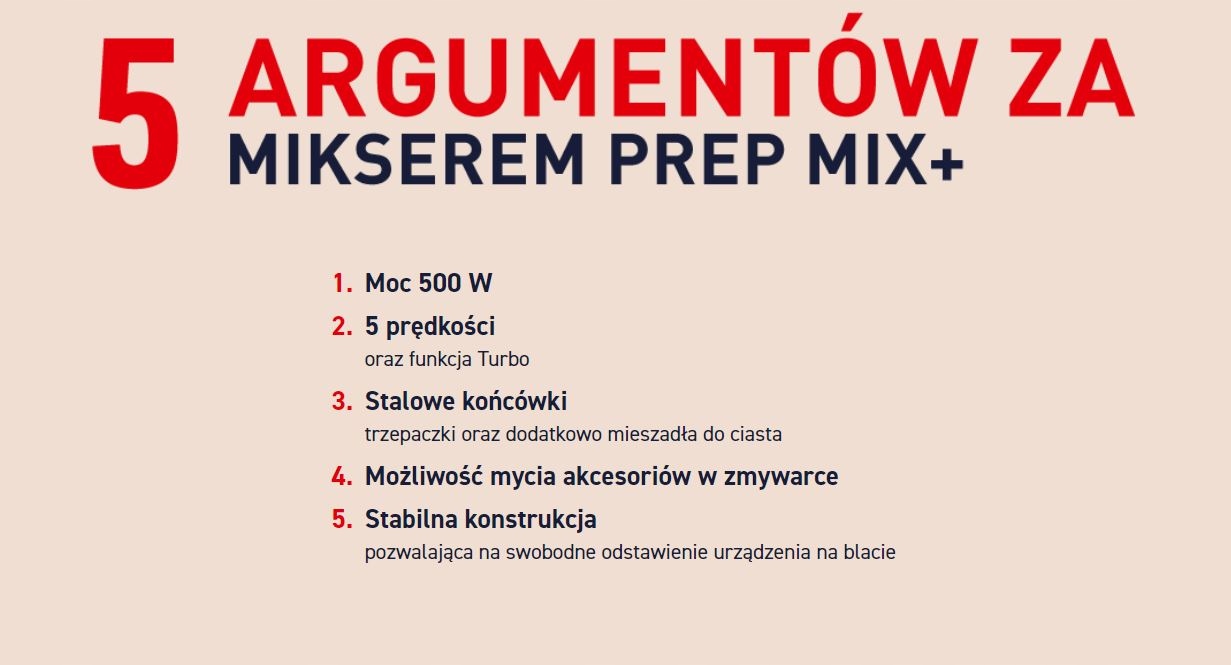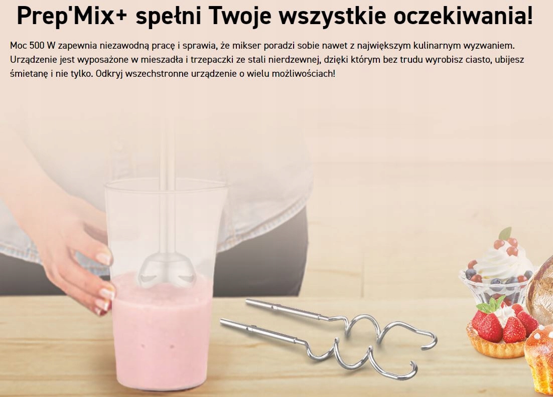 Запах домашней выпечки и удовлетворение родных и близких – самое большое удовольствие. Именно поэтому Tefal подготовил для вас незаменимого помощника в выпечке! Откройте для себя ручной миксер Tefal Prep'Mix+, который благодаря мощности двигателя мощностью 500 Вт справится с большими и маленькими кухонными задачами. Входящие в комплект венчики из нержавеющей стали прекрасно взбьют яичные белки и сливки, а миксеры из нержавеющей стали замесят тесто и взбьют масло. 5 скоростей и режим «Турбо» облегчают приготовление домашней выпечки. Устройство было спроектировано таким образом, чтобы его внешний вид отражал высокую эффективность. Эргономичная ручка покрыта нескользящим покрытием для удобства захвата, а устойчивая конструкция означает, что при использовании миксера его можно отложить в сторону, не испачкав столешницу. Мешалки и венчики можно мыть в посудомоечной машине.