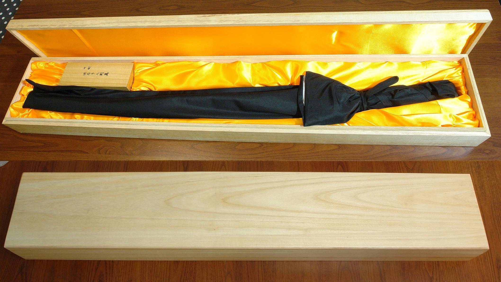 - Деревянная лакированная коробка, облицованная атласом, для хранения меча или использования в качестве подарочной упаковки. - 1 шт.