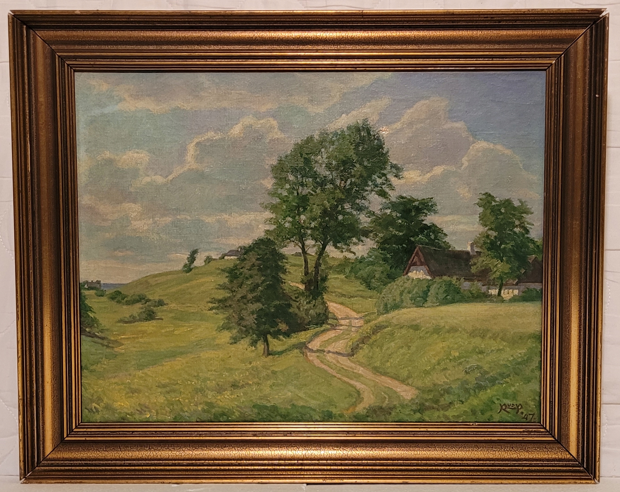 РУД-ПЕТЕРСЕН (1871-1961) - "СЕЛЬСКИЙ ПЕЙЗАЖ", прекрасная картина маслом - 1947.