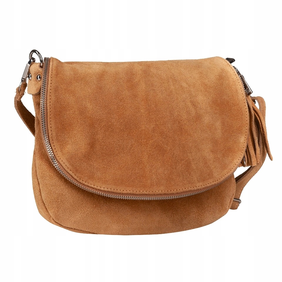 RUDA ZAMSZOWA LISTONOSZKA Z KLAPĄ CAMEL MIĘKKA SKÓRA ZAMSZ VERA PELLE
