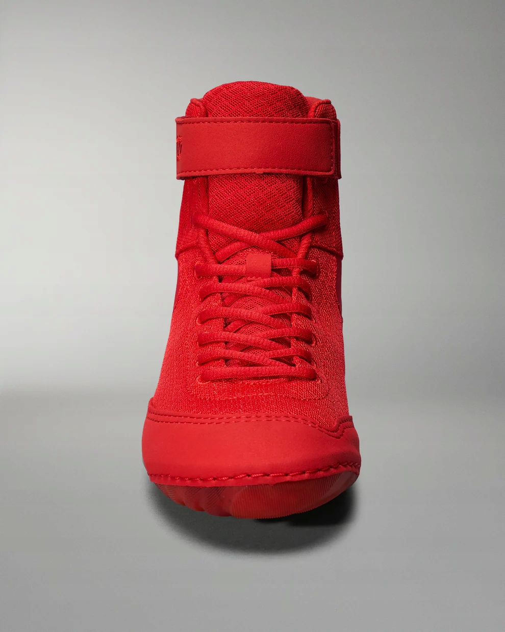 Внешняя единственная низкая профили снижает вес, поддерживая адгезию и гибкость. Боковой рисунок адгезии был разработан специально для борцов, которые используют быстрое ускорение вперед