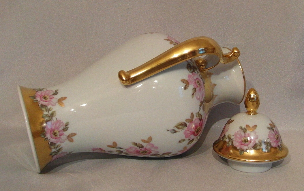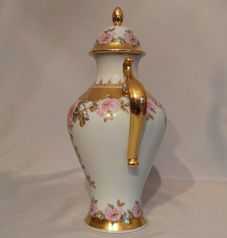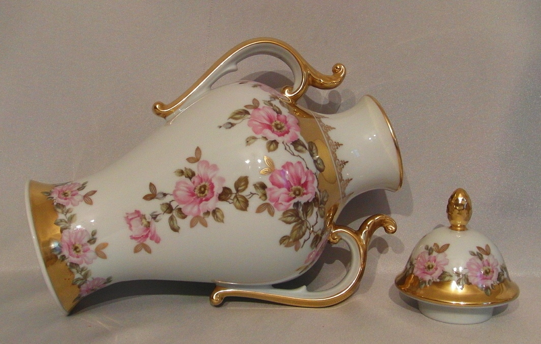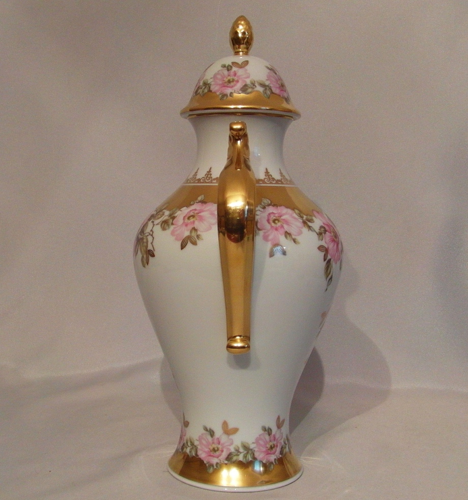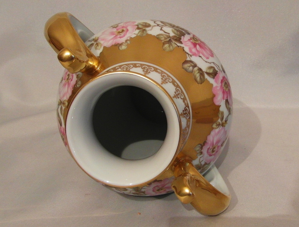 Белый фарфор, привлекательной формы. Широкая позолота, цветочный мотив.