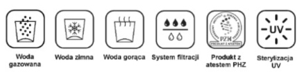 ✓ Интуитивное управление - система слива воды, используемая путем нажатия рычага с чашкой, - способствует быстрому наполнению (поток около 2,5 л/мин) и обеспечивает обслуживание многих пользователей в короткие сроки. . Благодаря тому, что пользователь не касается поверхности диспенсера при наборе воды, рычажная система обеспечивает высокую гигиеничность использования устройства.