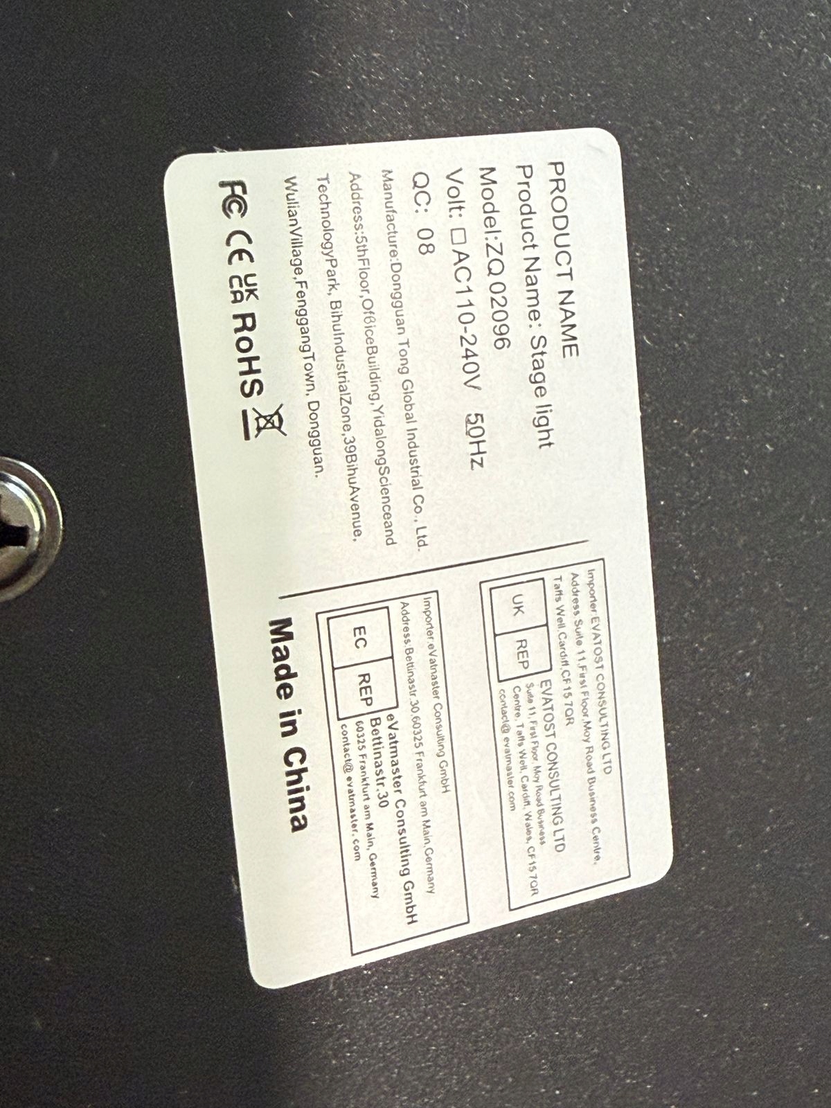 • Комплект поставки: 1 передвижной прожектор; 2 ручки; 2 винта; 1 х шнур питания; 1 руководство пользователя (может отсутствовать