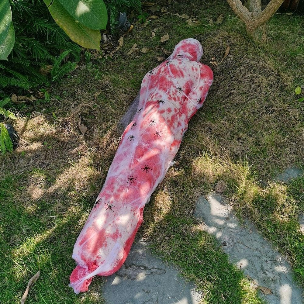 🕷️ Реалистичный и устрашающий дизайн - длина 150 см, поверхность покрыта пятнами крови, паутиной, пауками и светодиодной гирляндой, что усиливает устрашающий эффект в ночное время.