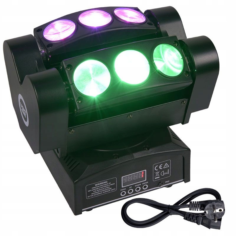 Light4me Head Spider Head 6x10 b> имеет два параллельных светодиодных луча, которые могут самостоятельно перемещаться по своей собственной оси и устанавливаются дополнительно на роторной платформе, которая позволяет освещать более широкую область. Каждый beam оснащен 3 диодами с емкостью по 10 Вт каждая , излучающие beam луча в цветах rgbw . Примечательно достойна возможности использования до 15 встроенных программ, которые будут отлично работать на каждом событии, особенно когда у нас кончится время для ручных настройки