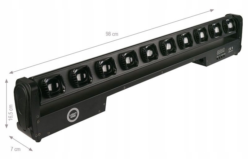 - оснащена десятью эффективными, очень мощными светодиодами мощностью 15 Вт, работающими в полной цветовой палитре RGBW