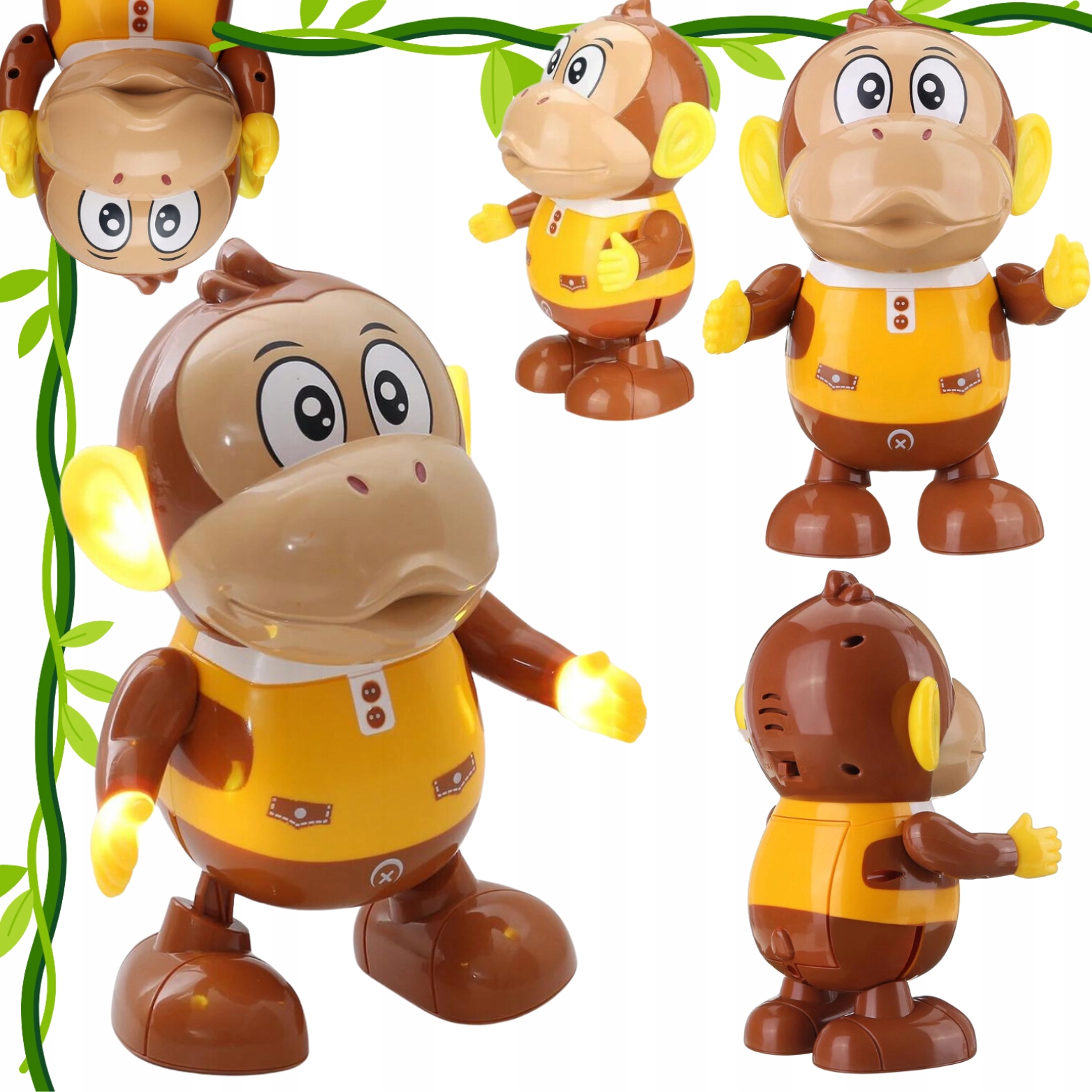 У обезьяны подвижные лапы и ноги. Лапы и уши светятся разными цветами, добавляя привлекательности и стимулируя чувства. Также игрушка имеет функцию воспроизведения музыки, под которую можно танцевать. Благодаря этому ребенок может весело провести время и одновременно развить моторику, танцуя со своим спутником или следуя за ним, когда он уходит. Это необыкновенная игрушка, которая подарит массу радости и улыбок каждому малышу и займет его надолго. Идеальный друг для малышей, которые любят музыку и движение.
