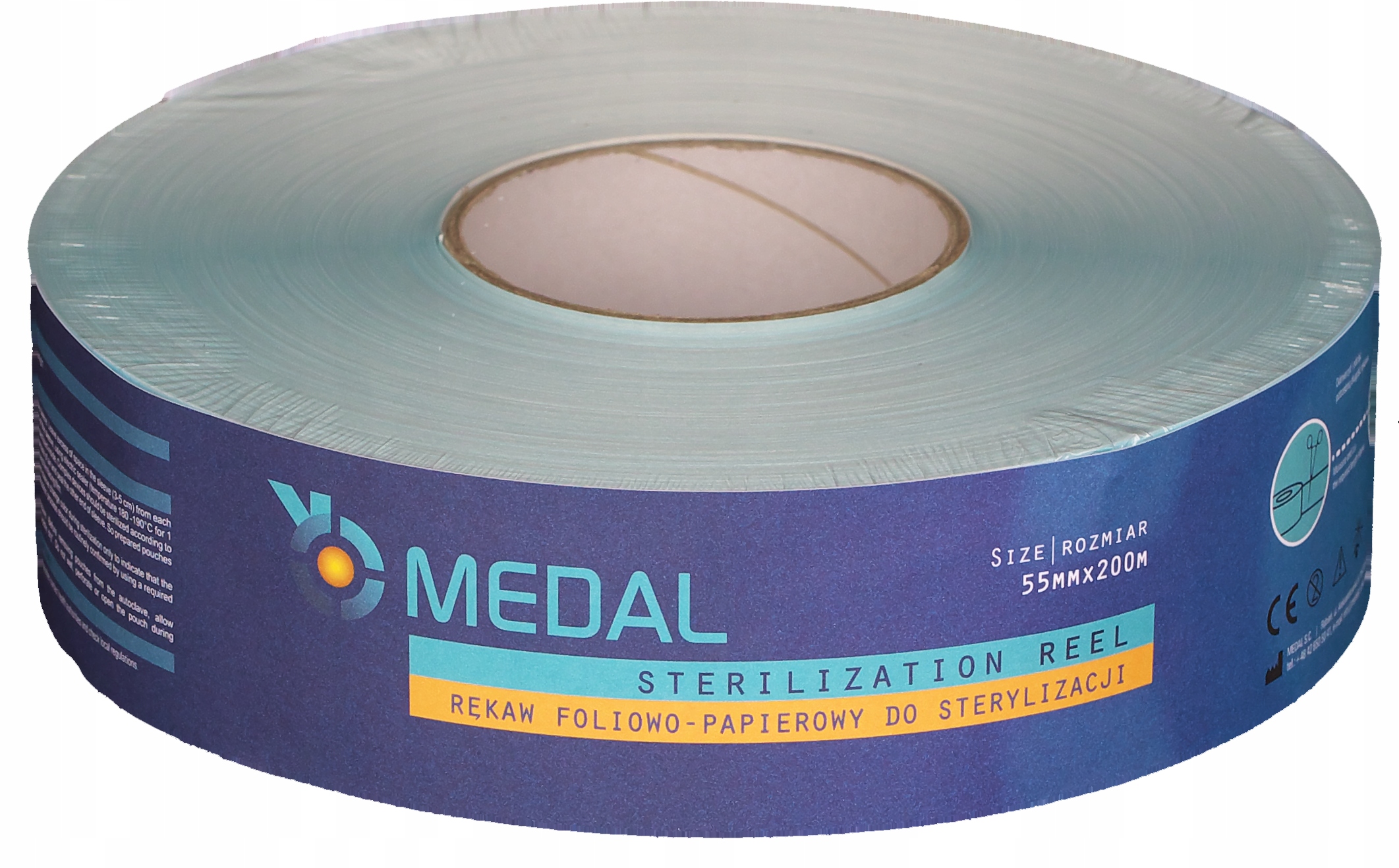 МЕДАЛЬ ДЛЯ СТЕРИЛИЗАЦИИ РУКАВ 5,5 см Х 200 м ИЗ ФОЛЬГИ И БУМАГИ.