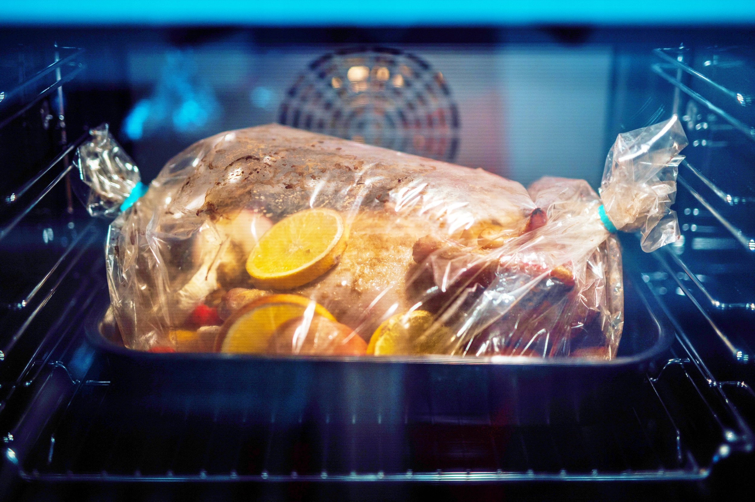 Приготовьте блюдо в духовке, используя рукав для запекания Paclan.