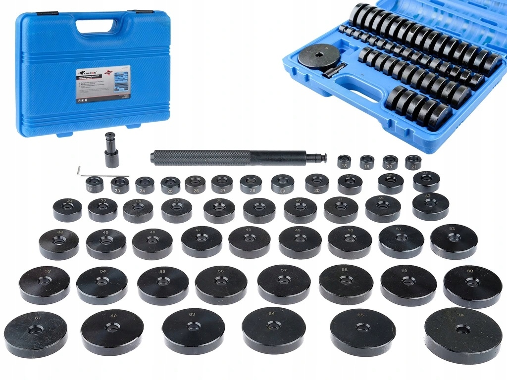 Приложение: Профессиональный набор инструментов для монтажа и демонтажа подшипника, а также металлических резиновых рукавов и булавок. Набор также может использоваться в качестве адаптеров для гидравлических прессов при сжимании подшипников, рукавов и булавок