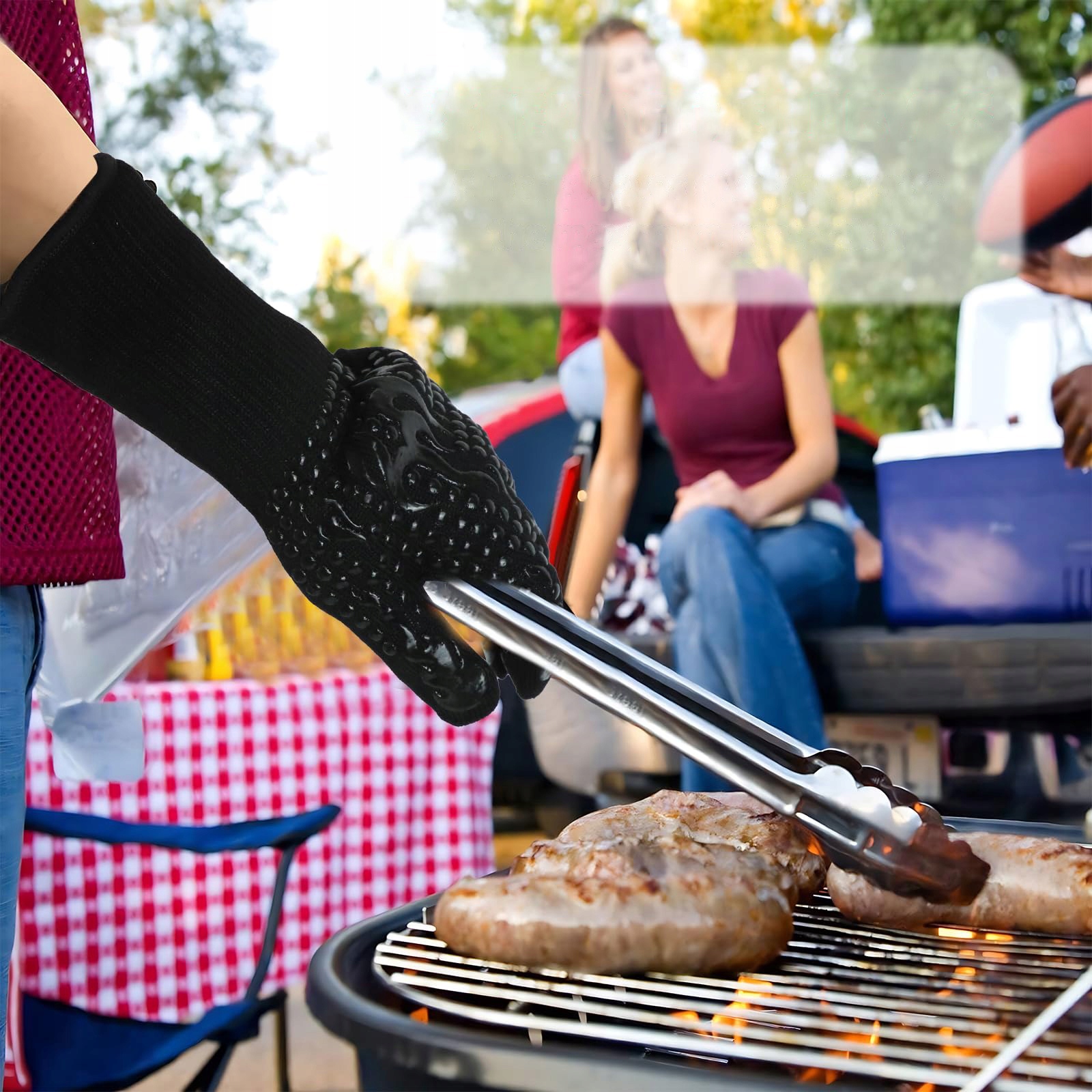 2 -кратные перчатки на гриле, теплостойкий, огнеупорный, до 800 ° C, защитные перчатки, перчатки для духовки h1>