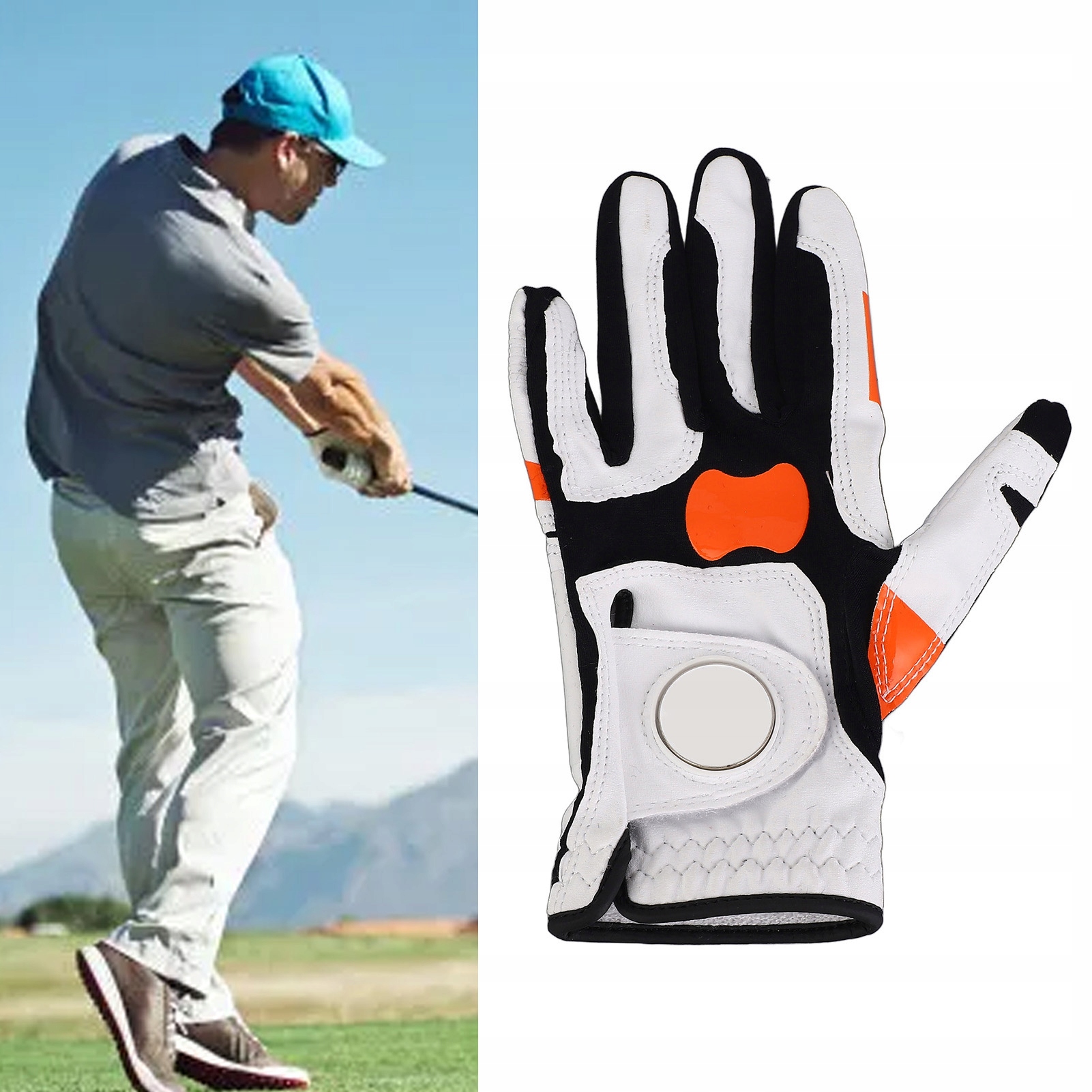 3. Оранжевая силиконовая поверхность: внутренняя часть перчатки имеет оранжевую силиконовую поверхность, благодаря чему клюшка для гольфа хорошо лежит в руке, уменьшая проскальзывание и сохраняя точность.