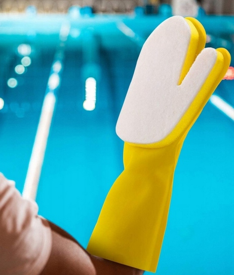 С помощью специальной перчатки, предназначенной для мытья бассейна, вы сможете добиться потрясающего эффекта очистки элементов бассейна и наслаждаться здоровой и приятной ванной.