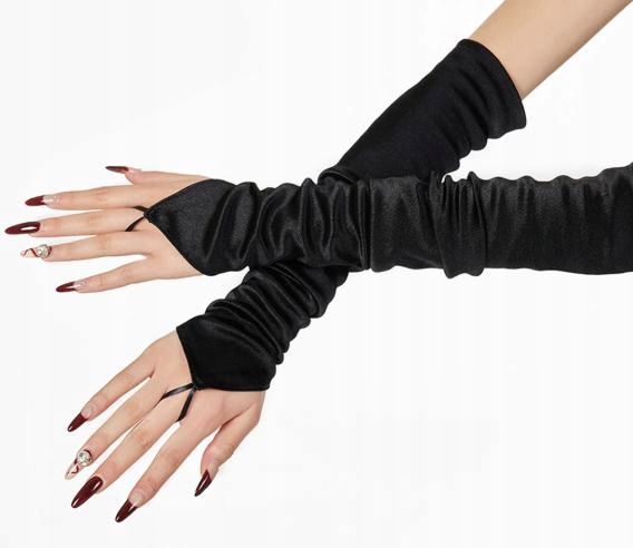 РУКАВИЧКИ ЧОРНІ ДОВГІ АТЛАСНІ ГЛАМУРНІ