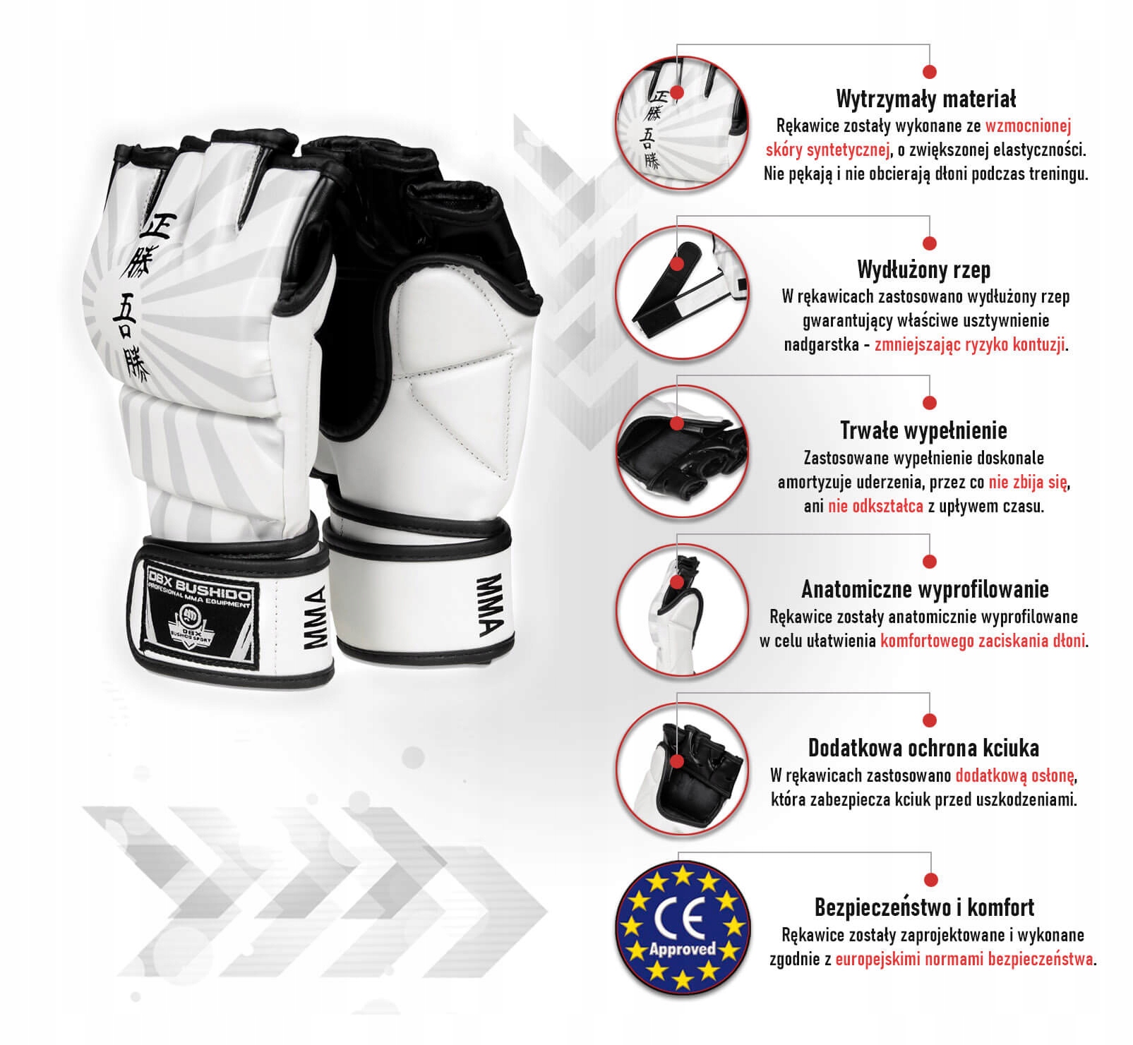 ТРЕНУВАЛЬНІ РУКАВИЧКИ ММА БУШІДО ДЛЯ СУМКИ ГРУШИ, ЗАХИТАЮЧІ, ДОВГІ НА ЛИПУЧЦІ JAPAN M