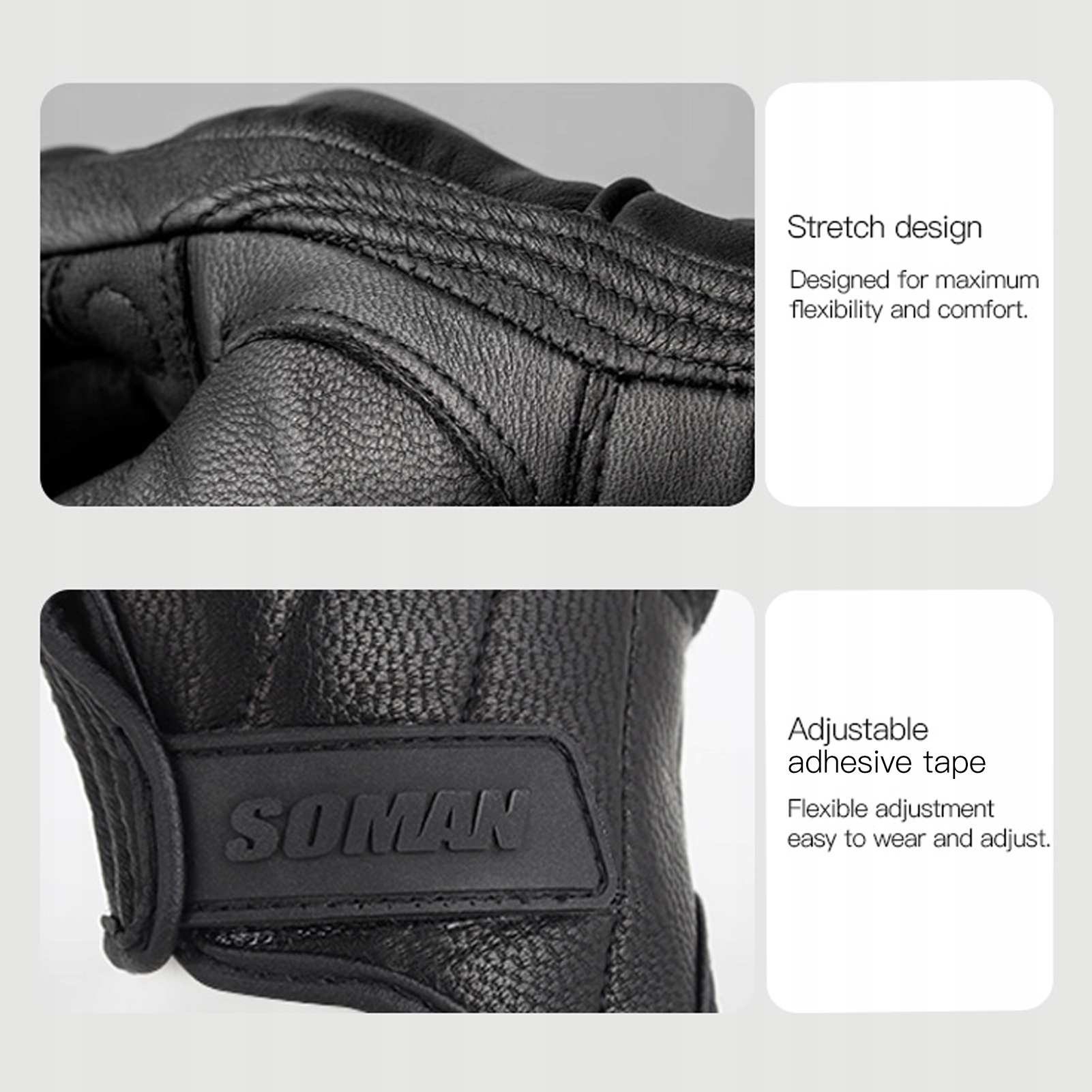 1. Премиум материал: наши мотоциклетные перчатки изготовлены из козьей кожи премиум -класса с мягкой и удобной подкладкой, обеспечивая тепло и долговечность во время холодных поездок.