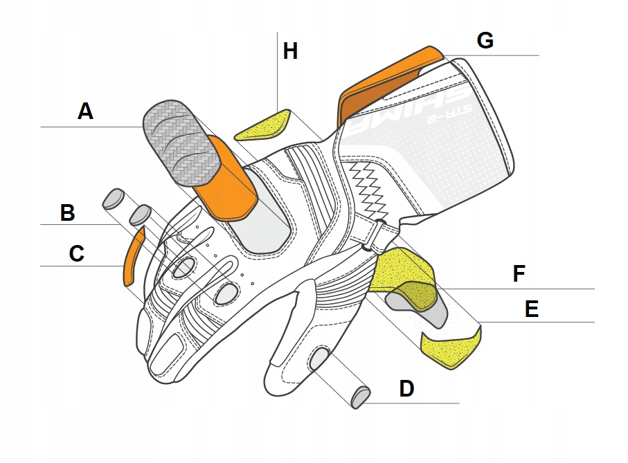 - v-lock , обеспечивает хорошую, сильную посадку и в то же время, положив ремень на основание гарантии, что перчатка никогда не будет нарушена