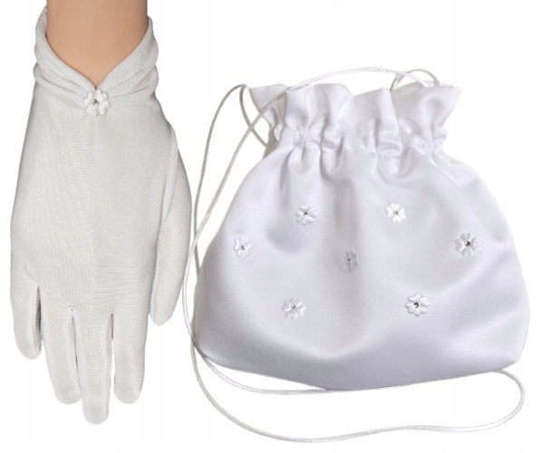 Белые эластичные перчатки для причастия для девочек, украшенные маленьким атласным цветком со стразами.