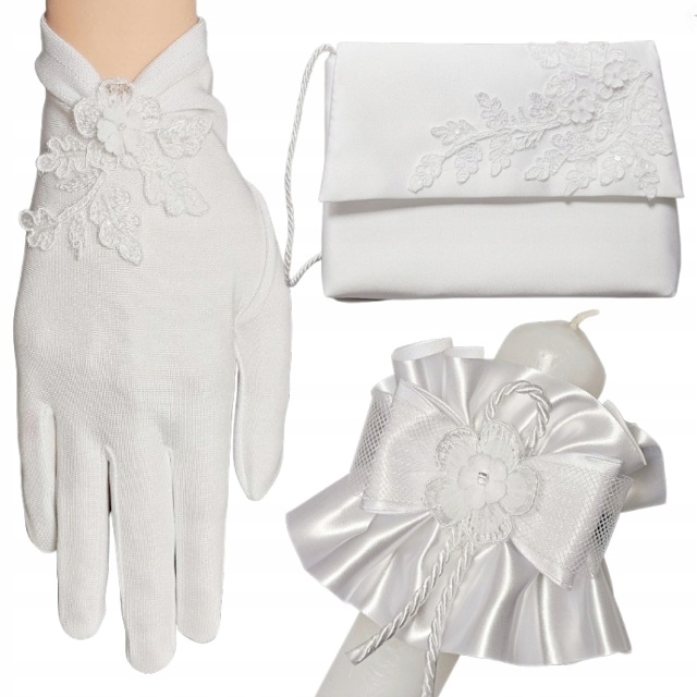 белые пять -прозвученные перчатки причастия. Украшен кружевным применением.