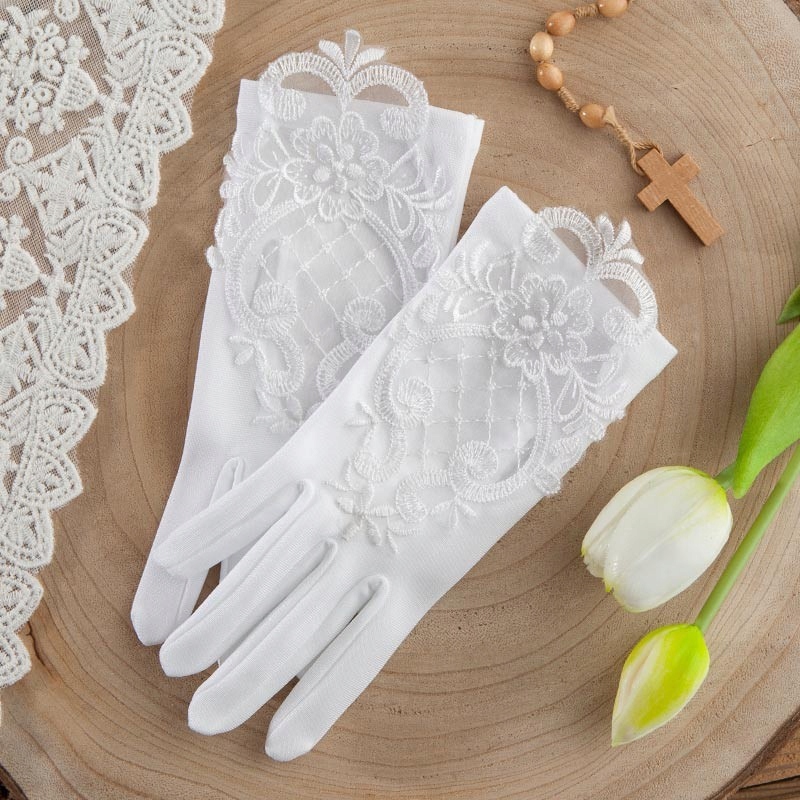 - перчатки станут отличным дополнением наряда девушки во время первого причастия, они идеально подойдут к белому платью или альбу.