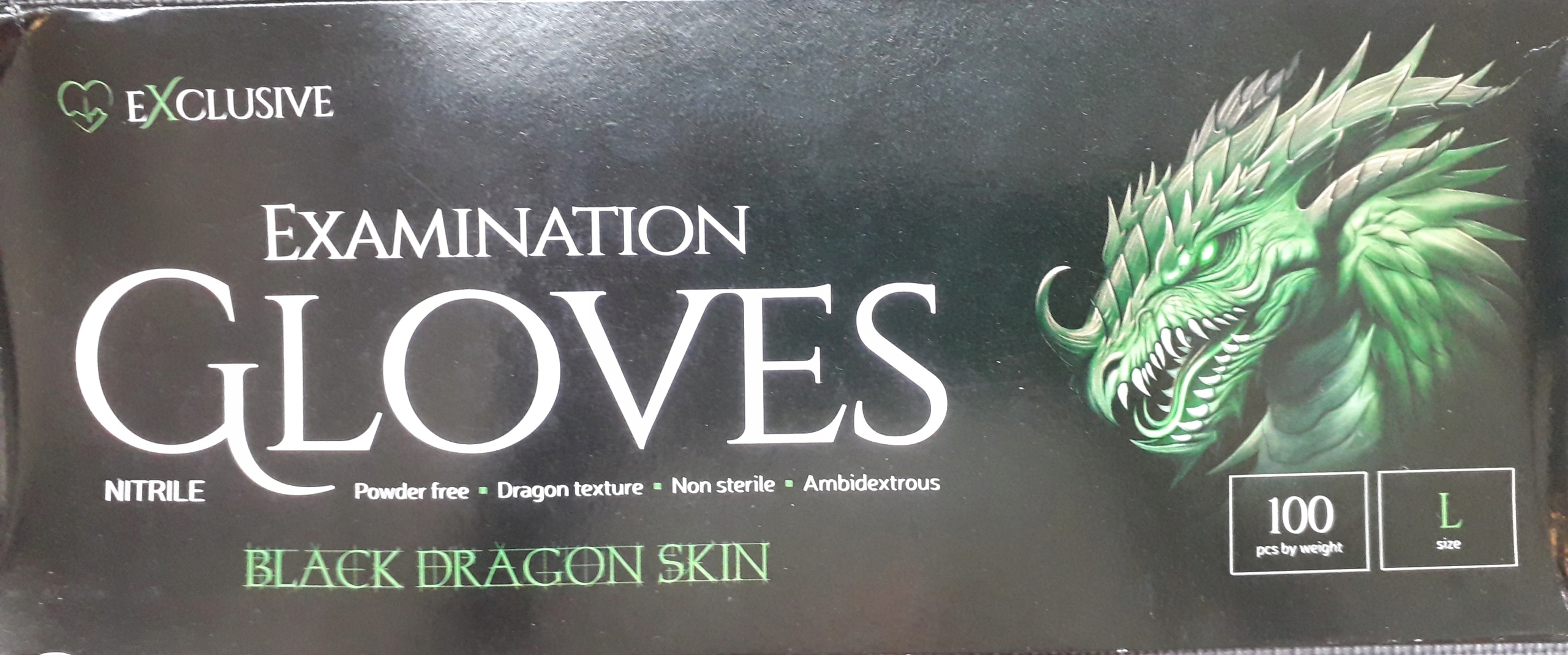 Предмет предложения — нитриловые перчатки Black Dragon Exclusive черного цвета, упаковка 100 штук, размер L.