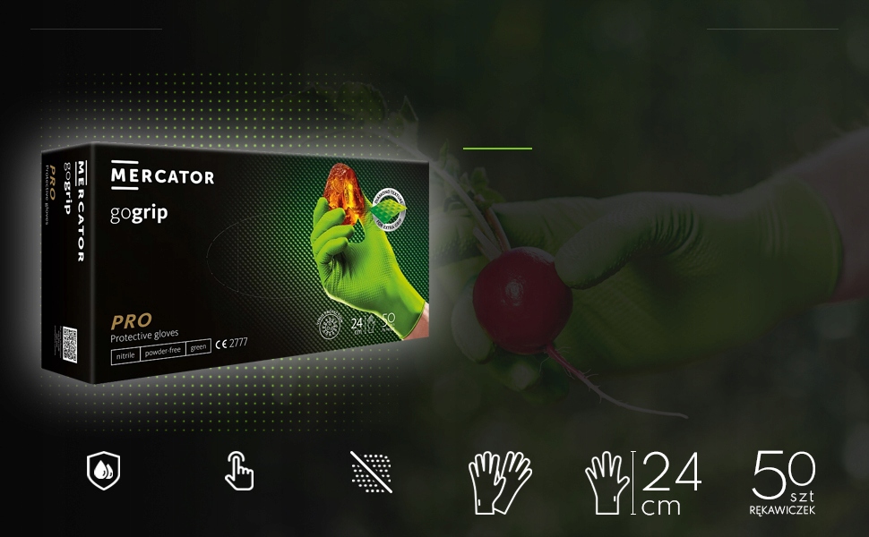 Для прочных зеленых нитриловых перчаток MERCATOR® gogrip предусмотрена толщина, которая, с одной стороны, обеспечивает адекватную защиту, а с другой стороны , обеспечивает надежный захват и точность операций.