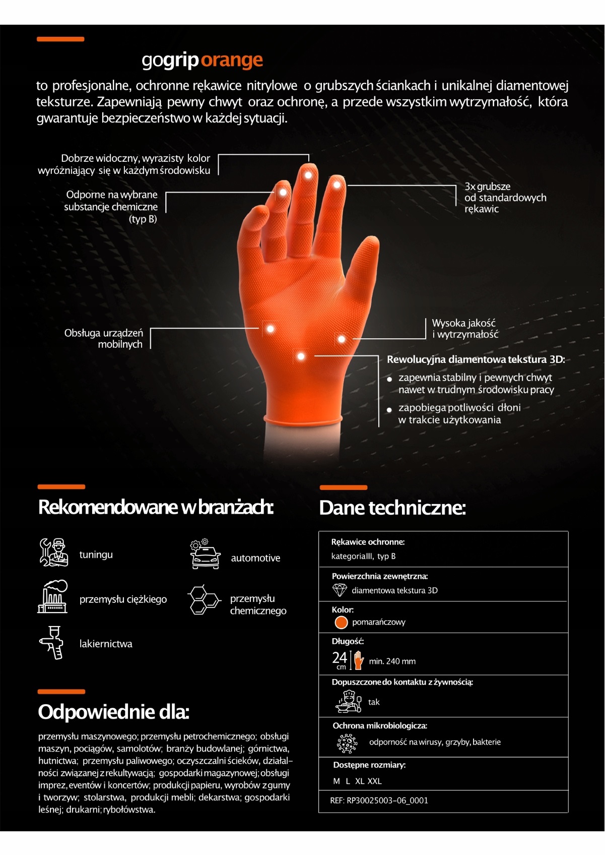 - Внешние и внутренние выступы минимизируют соскальзывание и снижают утомляемость рук, что особенно важно при механической работе и необходимости надежного захвата во влажной или маслянистой рабочей среде.