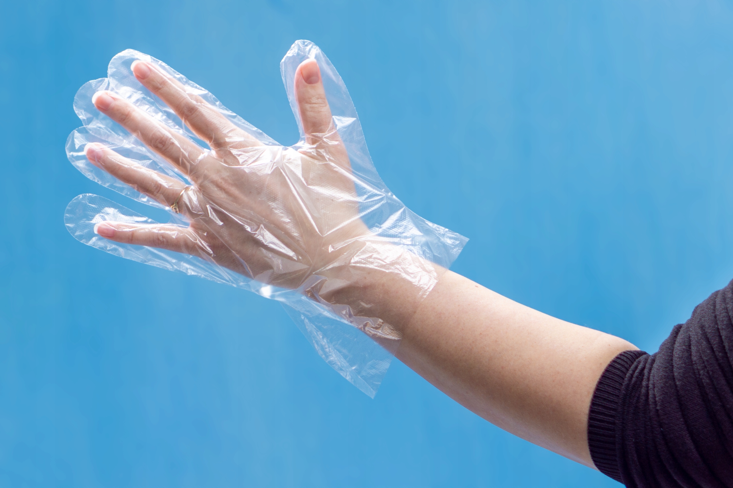 - Одноразовые пластиковые перчатки. чистый и гигиеничный, эффективно защищает руки от загрязнения.