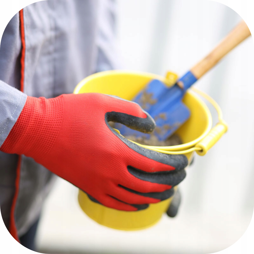 Рабочие перчатки из полиэстера, покрытые латексом с шероховатой структурой, отделанные манжетой прочны и устойчивы к механическим повреждениям. Они относятся к категории CAT II и CE, что означает, что они соответствуют требованиям стандарта EN 388 и директив Европейского Союза относительно защиты здоровье и безопасность пользователей. Эти перчатки водонепроницаемы (не меняют своих свойств при контакте с водой) и обеспечивают хороший захват. Кроме того, манжета на конце перчатки обеспечивает правильное прилегание к руке, что повышает комфорт работы и сводит к минимуму риск попадания грязи в перчатку.