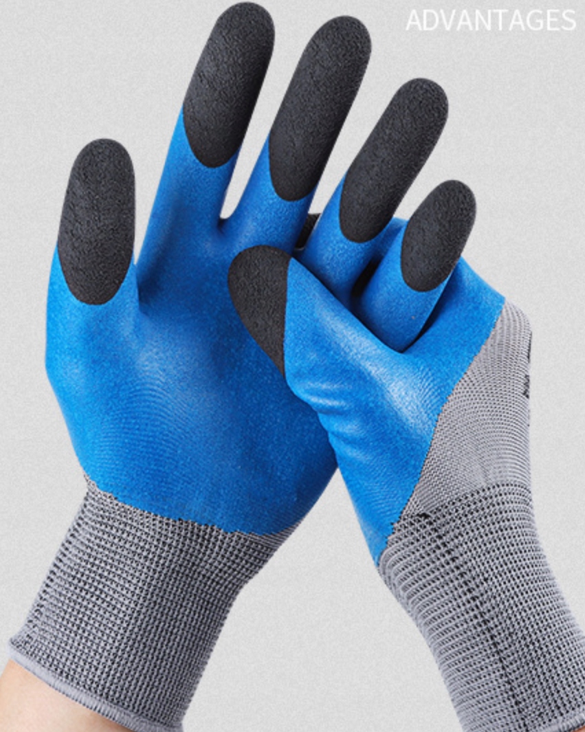 ✅ на 3/4 перчатки покрыта вспененным латексом с гладкой текстурой синего цвета,