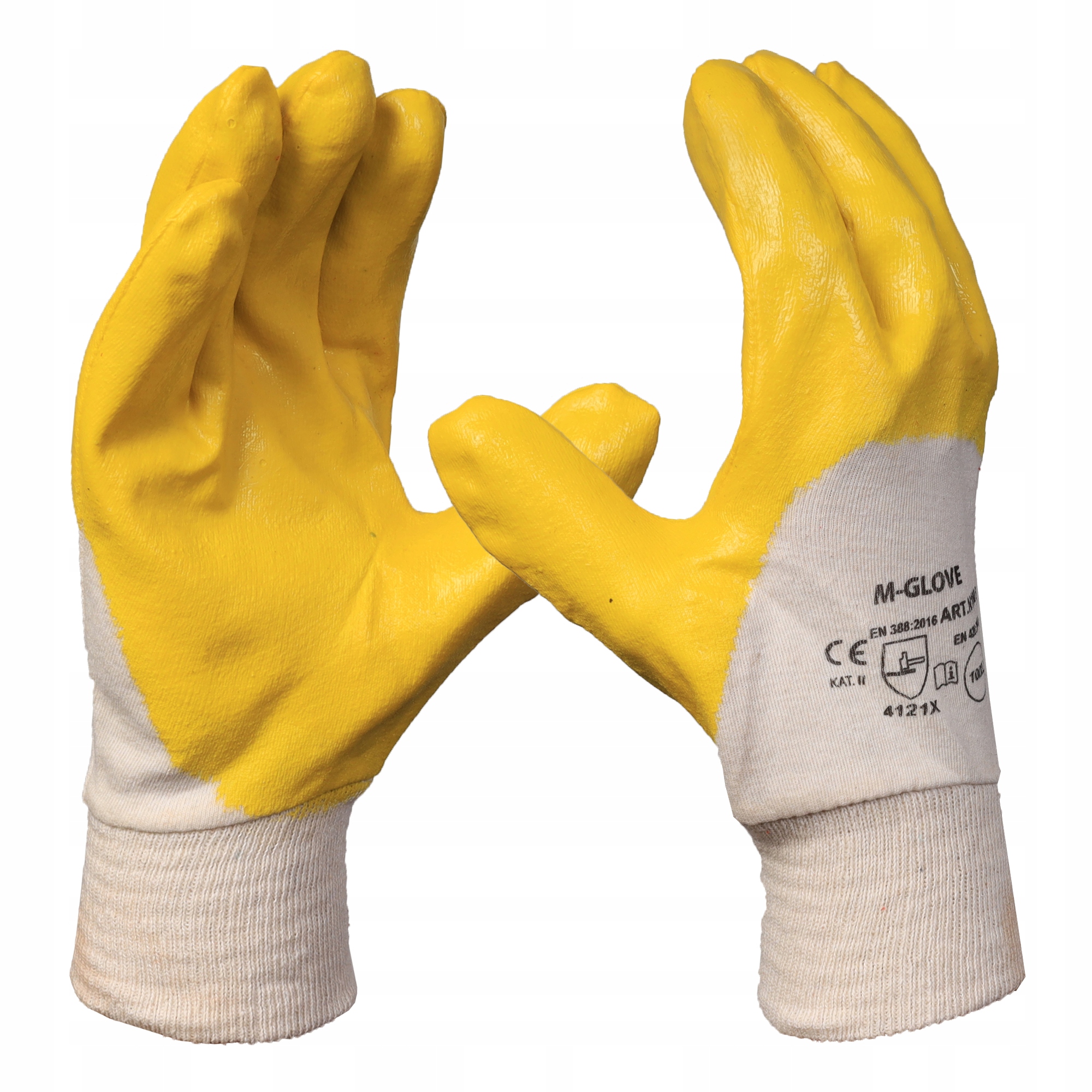 - Рабочие перчатки изготовлены из приятного для кожи хлопка с желтым нитрильным покрытием в рукоятке и по всей длине пальцев.
