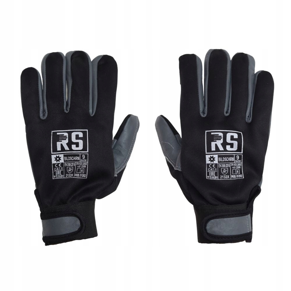 Рабочие перчатки RS Bildschirm изготовлены из эластичной ткани Softshell, благодаря которой кожа рук может свободно дышать во время работы и выводится излишек пота. Они усилены овечьей кожей, которая не твердеет при намокании и высыхании, что позволяет использовать их дольше. Bildschirm имеет накладки на указательном и большом пальцах, позволяющие работать с сенсорными экранами, поэтому пользователь может свободно отвечать на телефонные звонки в любой момент во время работы. Они отделаны липучкой, что гарантирует устойчивое положение перчаток на руках.