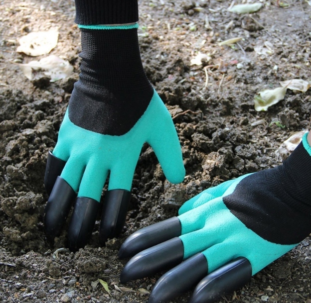 Когти на перчатках обеспечивают надежный захват садовых инструментов и земли, что облегчает выполнение точных действий.