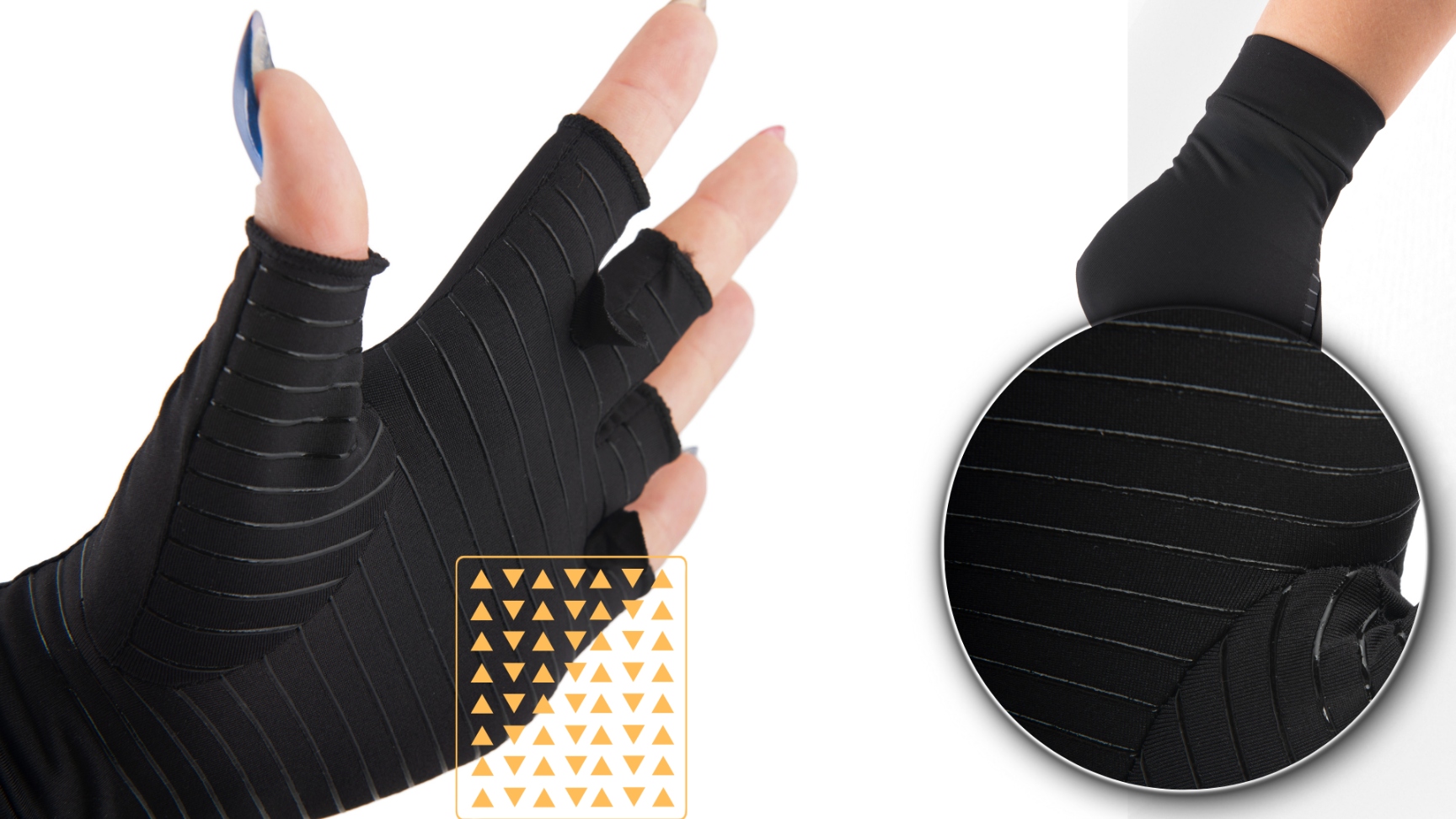 - Внутренняя часть перчаток покрыта силиконовыми полосками, которые обеспечивают надежный и стабильный захват в любой ситуации. Противоскользящая структура предотвращает соскальзывание руки и гарантирует комфорт и безопасность во время повседневной деятельности, тренировок или работы.