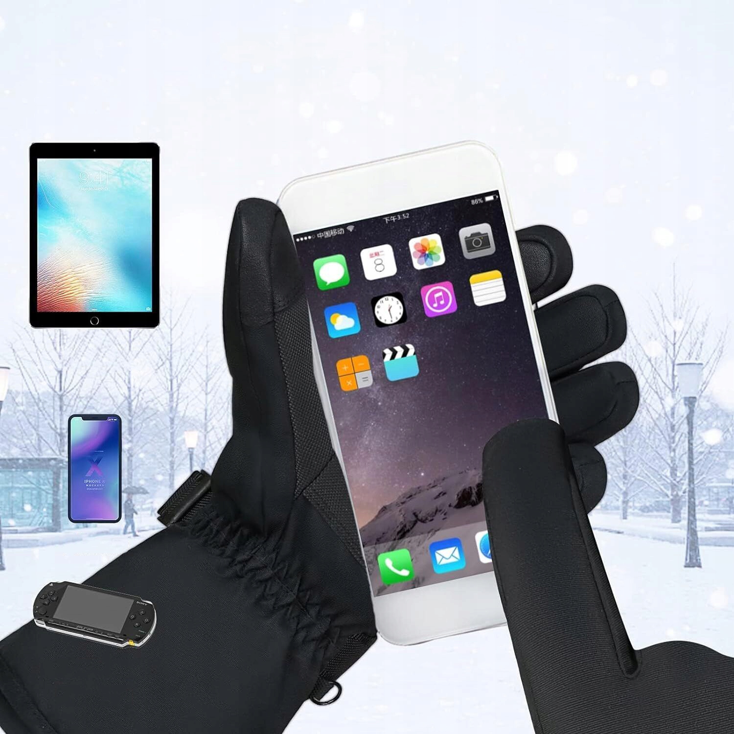 РУКАВИЧКИ З ЕЛЕКТРИЧНИМ НАГРІВАННЯМ, ВІТРОЗАХИВНІ, 3 РЕГУЛЯТОРИ ТЕМПЕРАТУРИ