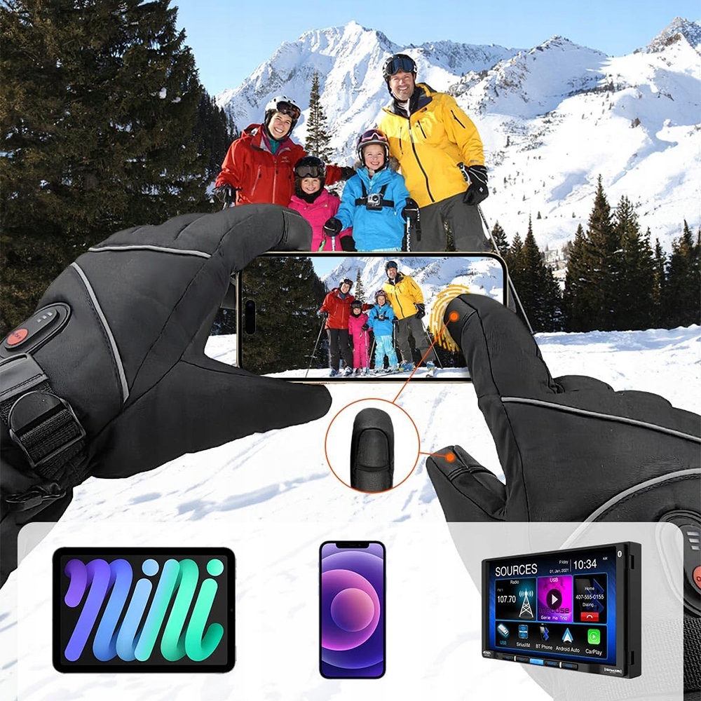 Эти перчатки с подогревом оснащены встроенными сенсорными датчиками на большом и указательном пальцах, поэтому вы можете свободно пользоваться мобильным телефоном, планшетом или отвечать на звонки, не снимая нагревательные перчатки. Пусть вашим рукам будет тепло и комфортно! Лыжные перчатки с подогревом и ладонью из прочного полиуретана с нескользящей текстурой, облегчающей удержание электроники/руля/руля. Не позволяйте холодным кончикам пальцев помешать вам заняться любимым занятием на свежем воздухе этой зимой.
