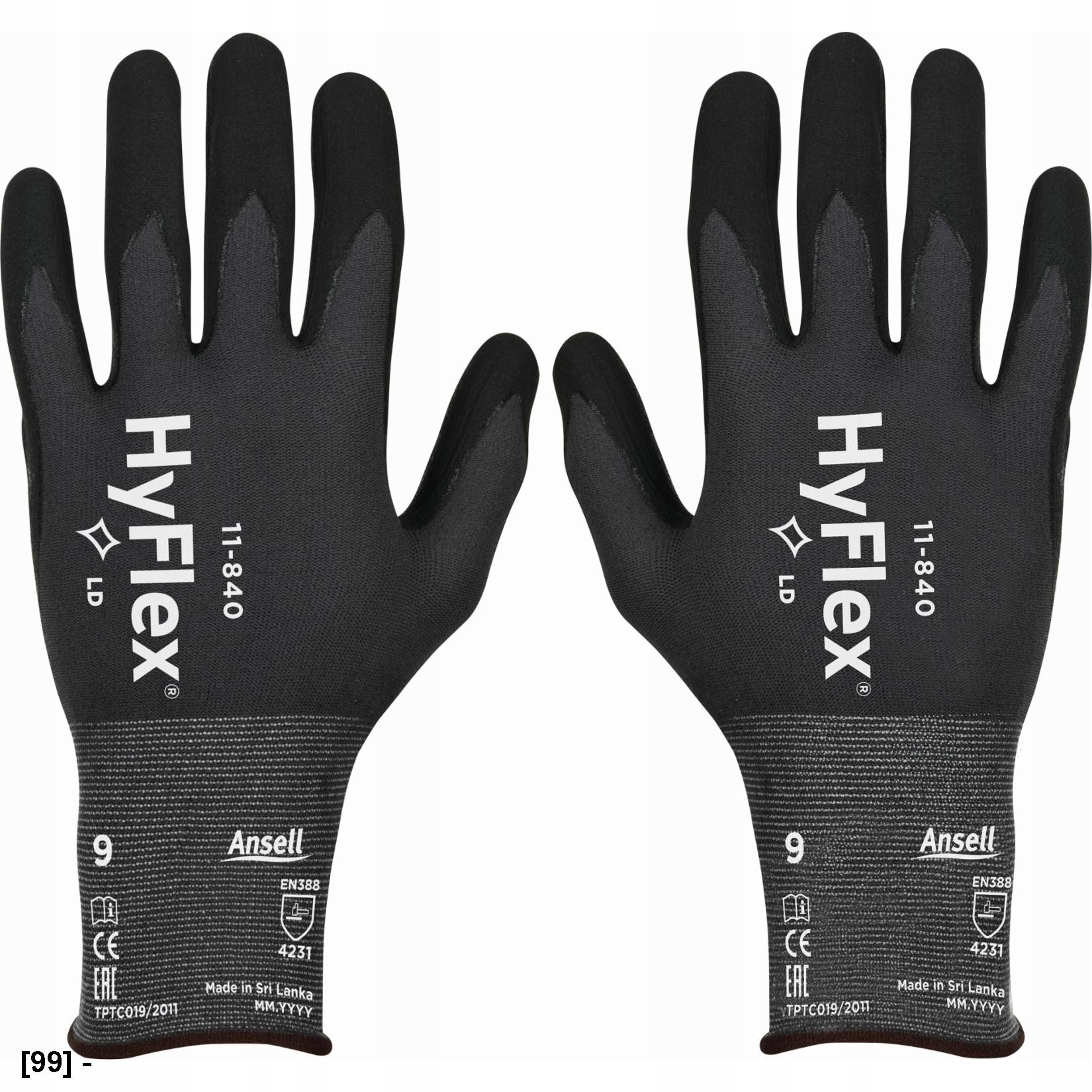 РУКАВИЦІ ТОЧНІ РОБОЧІ РУКАВИЧКИ БЕЗ ШВІВ ANSELL HYFLEX 11-840 р. 9