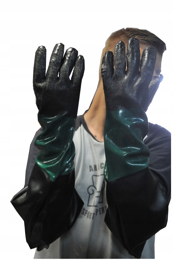 Перчатки для пескоструйных аппаратов из прочных материалов.