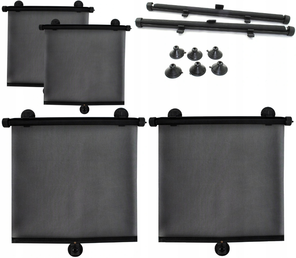 Солнцезащитные шторки защищают пассажиров от чрезмерного солнечного излучения и существенно снижают нагрев салона автомобиля. Набор присосок и крючков позволяет легко установить шторку на лобовое стекло автомобиля.