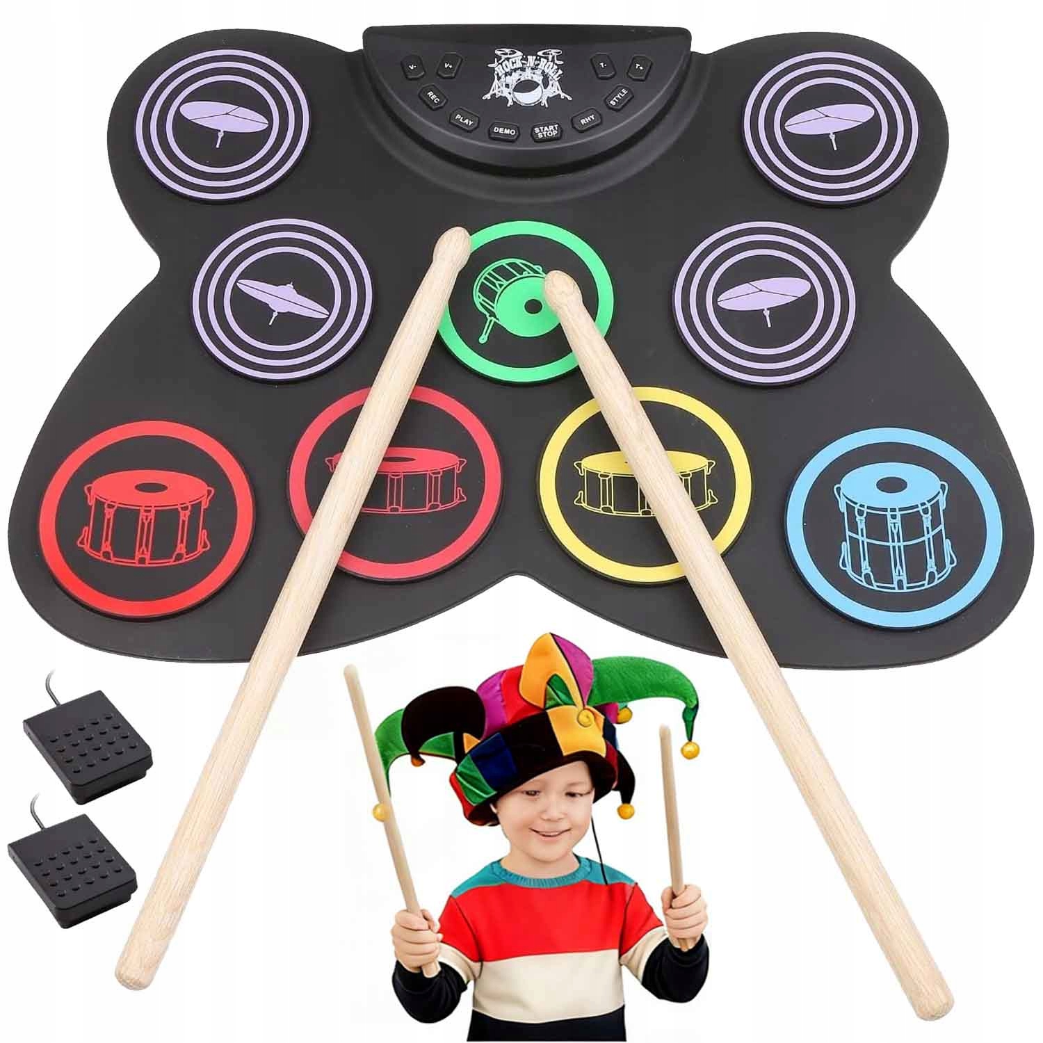 ПОРТАТИВНЫЙ ЭЛЕКТРОННЫЙ БАРАБАН USB-C MP3 + НАБОР ПЕДАЛЕЙ И ПАЛОЧЕК