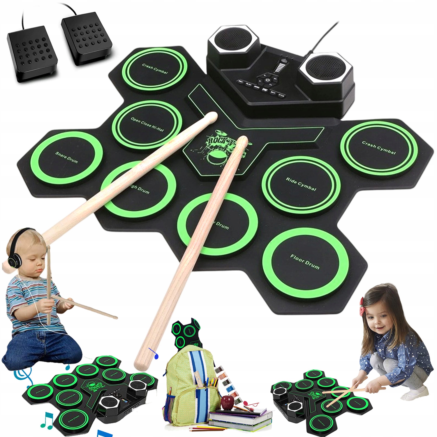 Складная электронная ударная установка – идеальный инструмент для всех любителей ритма, начинающих барабанщиков, а также людей, которые путешествуют и не хотят отказываться от возможности играть на барабанах. Оборудование идеально подходит для обучения и развлечения. Это позволяет развивать соответствующие двигательные навыки, связанные с удержанием и перемещением палочек, а также ритмические.