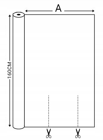 Ножницы на изображении показывают, как разрезать ткань. По специальному запросу мы также можем укоротить ткань по высоте.