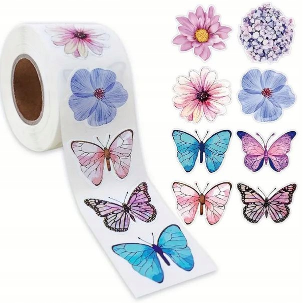 Склейки с наклейками круглые бабочки цветы 500 штук