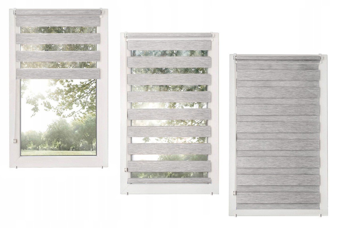Классическая ткань с чередующимися затемнениями и прозрачными полосками, позволяющими плавно регулировать количество света. Прозрачные полосы имеют тот же цвет, что и блэкаут, а сетка размером примерно 2,5×1 мм мягко фильтрует свет. Ткань матовая, без блеска.