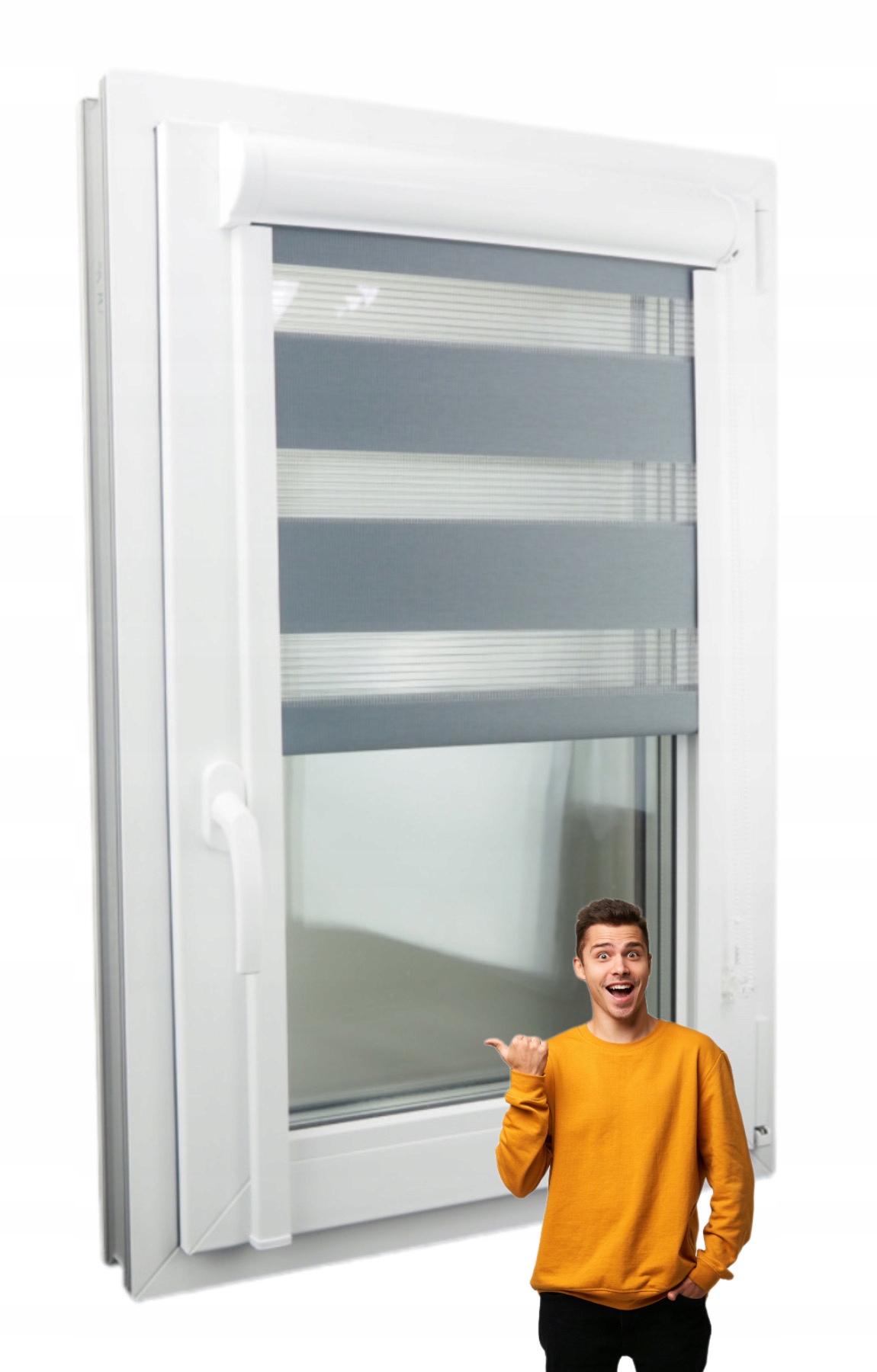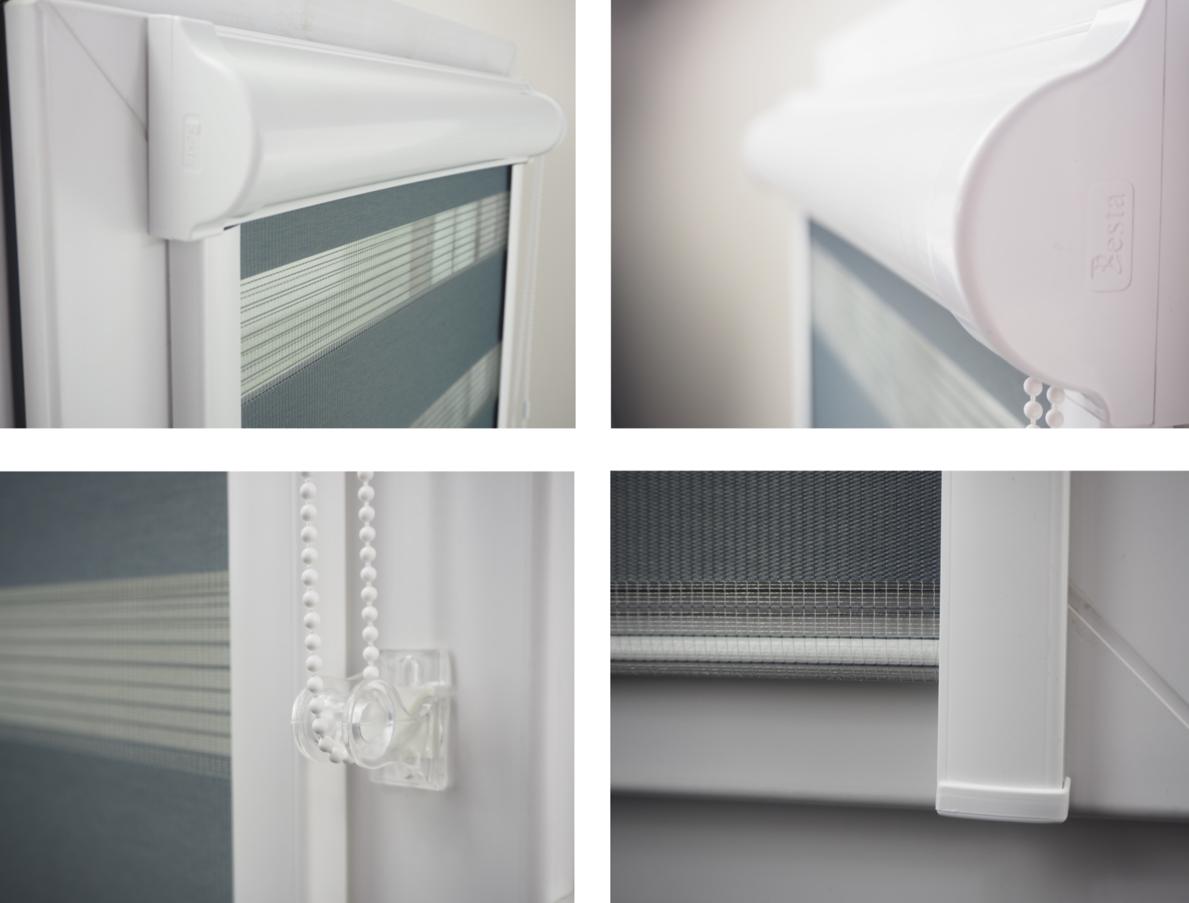 Жалюзи день и ночь имеют элегантный, футуристический вид за счет двойного слоя материала, состоящего из чередующихся полупрозрачных полос (день) и затемняющих (ночь).