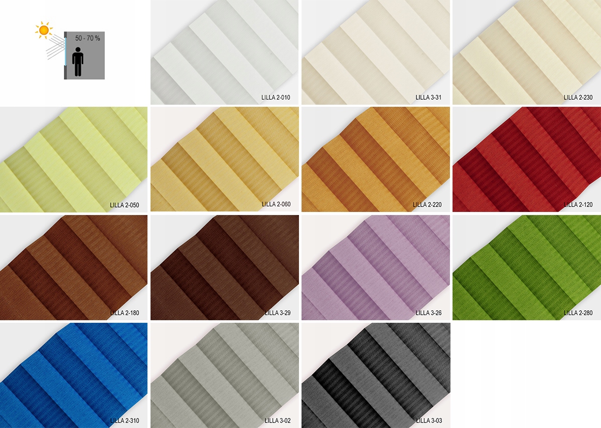 - BLACKOUT 50-70% (стандарт), - allegro.pl/ Offer/probki-fabric-do-rolet-pleat-50-70-zaciemniajace-10007340728