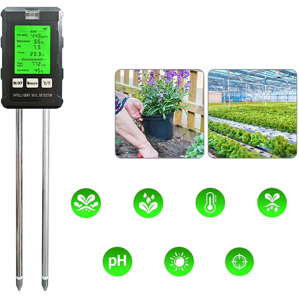 - Функции 6 в 1 - комплексный тестер почвы, который измеряет фертильность, температуру, свет, рН, влажность и влажность почвы, все в одном устройстве для садовников.